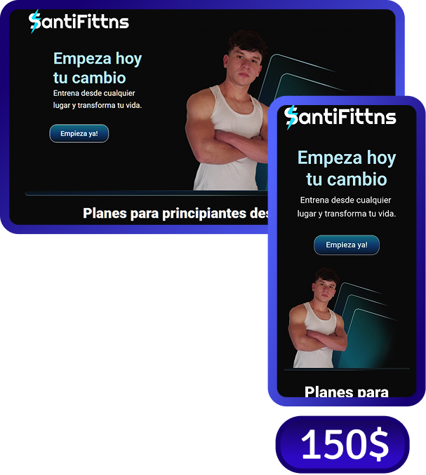 SantiFittns Un sitio web de fitness que ofrece planes de entrenamiento en línea, incluyendo opciones personalizadas y rutinas para principiantes, para que los usuarios puedan entrenar desde cualquier lugar.
